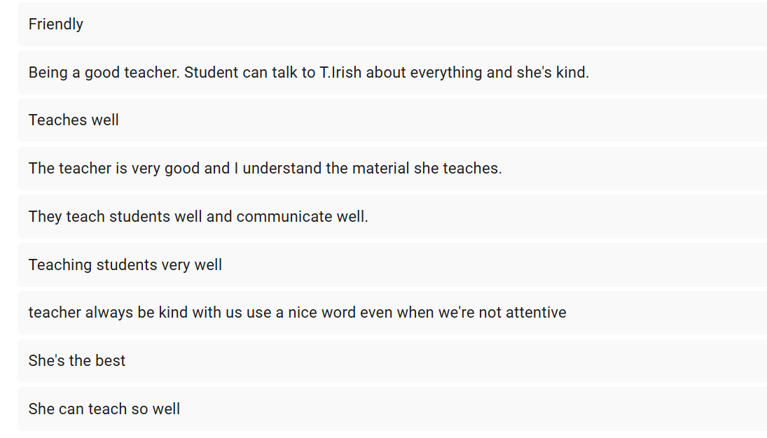 Screenshot of feedback provided by my high school students. Review more on my dedicated feedback page.